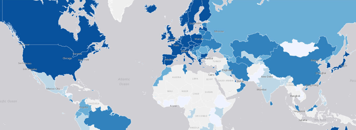 Explorez la carte SDG EAU PROPRE ET ASSAINISSEMENT pour analyser les résultats mondiaux. La carte indique le pourcentage de la population qui utilise des services d'eau potable gérés de manière sûre dans les zones urbaines et rurales.